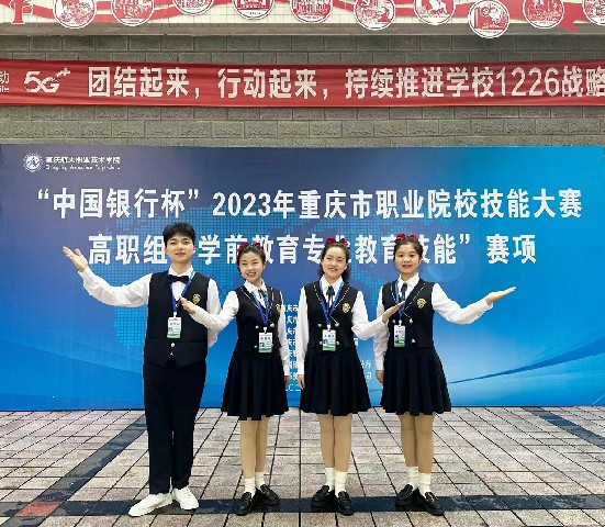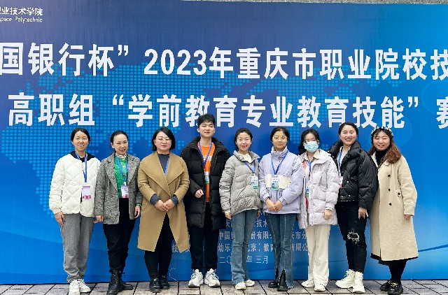 2023年3月,“中国银行杯”2023年重庆市职业院校技能大赛高职组学前教育专业教育技能赛项在重庆航天职业技术学院举行,来自重庆市34支队伍,68名选手同台竞技。其中伍丹老师和梁庆遥老师指导的张钰霞和刘鑫荣获一等奖,曹艳艳老师和胡爽老师指导的侯心雨和赵书涵荣获三等奖。通过专业教育技能大赛,检验和展示高等职业学校教育类专业教学改革成果和学前教育专业技能与职业能力,从而引领和促进高等职业学校教育类专业建设与课程改革,激发和调动行业企业关注和参与学前教育专业教学改革的主动性和积极性。同时,选手们也能在比赛中掌握更多的专业技能,锻炼综合素质能力,发扬工匠精神,培养精益求精的职业精神。
