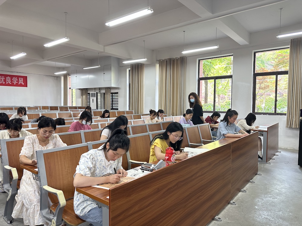 本次考级包含速写、素描、漫画、水粉画、书法等9个科目。5月3日在澳门pg官方电子平台开设主考场,考生共计38位,均来自澳门pg学前与艺术教育学院,展现了高职院校学生的高素质以及卓越的书法与绘画功底。随着主考场及各分考场的考级工作顺利完成,继续教育中心正在收集整理各考场的考级作品,待中国美术学院考级中心专家评卷。