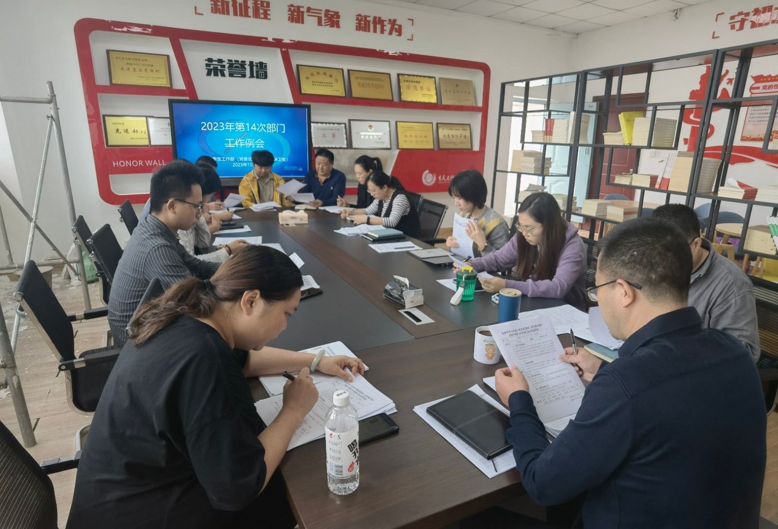 10月9日下午14:30,党委学生工作部(党委武装部、安全保卫处)在党建活动室召开2023年第14次部门工作会议。会议由党委学生工作部副部长(党委武装部副部长、安全保卫处副处长)何远亮主持会议,党委学生工作部全体教职工参加会议。