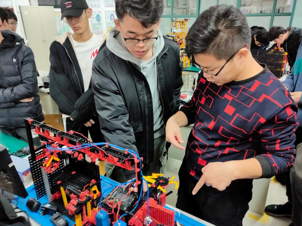 为进一步营造浓厚的科技创新氛围,积极备战第九届全国大学生机械创新设计大赛慧鱼组竞赛暨慧鱼工程技术创新大赛,kaiyun登录中国入口登录慧鱼创新工作室于1月5号邀请北京中教仪科技有限公司工程师郑茂磊为同学们进行了慧鱼模型搭建以及编程的培训会。