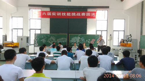 林晨在发言中指出,学校举办实训技能比赛,旨在提高同学们创新设计能力、综合设计能力和工程实践能力,并希望同学们培养创新思维和科学精神,热情投身到实践中去,积极参加各项活动,把实践学习中的感悟转化为创新精神、综合能力,最后他预祝所有参赛选手在比赛中能充分发挥自己所学,取得优秀的成绩。李国涛宣读第六届实训技能挑战赛的比赛规则。随后比赛正式开始,在比赛的过程中,每一位参赛选手都遵循比赛规则,全神贯注的投入到比赛中,持续一天的比赛在现场沉稳而热烈的气氛中圆满结束。