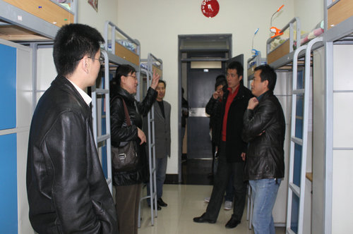 为以优异成绩迎接省教育厅专家组对学生公寓检查验收,贯彻落实学校关于开展宿舍安全卫生综合治理的通知精神,3月28日上午,机械学院党总支书记薛炜华、副书记李国涛带领各年级辅导员和部分班主任对学院嘉陵江路校区学生宿舍进行了检查指导。