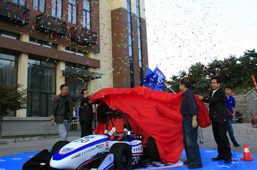 10月10日,青岛理工大学方程式赛车队迎来了自己喜庆的一天—QTU04号车出征仪式暨新车发布大会。青特车队特邀校党委副书记杨向荣、副校长李东,企业代表徐伟林、祁海、于志强、刘澎、刘茂林等出席新车发布会。汽车学院党政领导出席发布会现场。