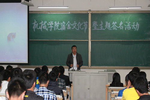 日前,机械学院第三届宿舍文化节开幕式暨主题签名活动在嘉陵江路新校区举行。学院团总支副书记化磊出席开幕式,各班班长、团支书、生活委员、宿舍长及学生会干部参加了此次活动。