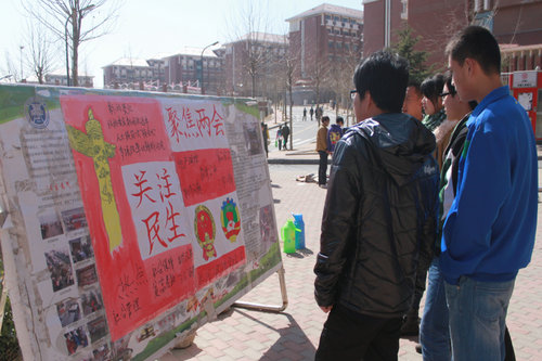 3月初,第十二届全国人民代表大会第一次会议和政协第十二届全国委员会第一次会议在北京开幕。为使广大学子深入学习领会“两会”精神,以“两会”精神指导自己的思想和行动,3月10日,机械学院在嘉陵江路校区学生二餐厅前举办了“两会”精神学习展。