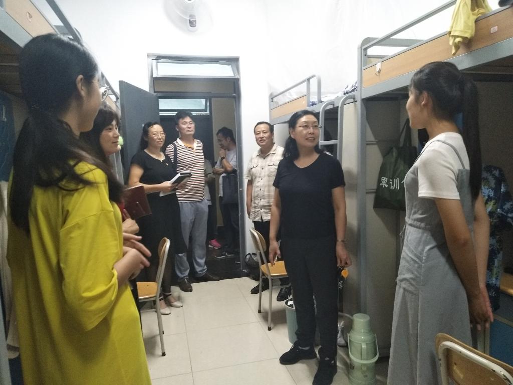 院领导走访宿舍,亲切慰问新生。晚上7点,学院党政领导班子及新生辅导员、班主任前往宿舍进行慰问。学院领导亲切的询问学生住宿情况,并对省外远道而来的同学表示关心,对来自寿光遭受洪灾的同学表示关怀,同时叮嘱新生要做好大学生涯规划等。