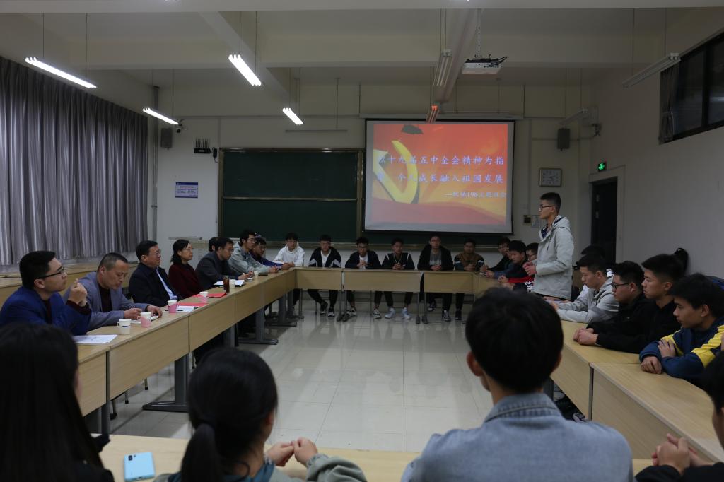 为学习贯彻习近平总书记在十九届五中全会上的重要讲话,弘扬十九届五中全会精神,指导学生把个人成长融入祖国发展,努力培养德智体美劳全面发展的社会主义建设者和接班人,校长谭秀森与其联系的kaiyun登录中国入口登录机械196班全体同学于2020年11月20日下午在嘉陵江路校区主教学楼B116教室举行了“以十九届五中全会精神为指导,把个人成长融入祖国发展”主题班会。校长办公室主任王雄、kaiyun登录中国入口登录党总支书记岳丽宏、副书记林海涛、学生工作办公室主任隋学智、辅导员张建军、机械196班班主任刘国梁参加了本次主题班会,班会由班主任刘国梁主持。