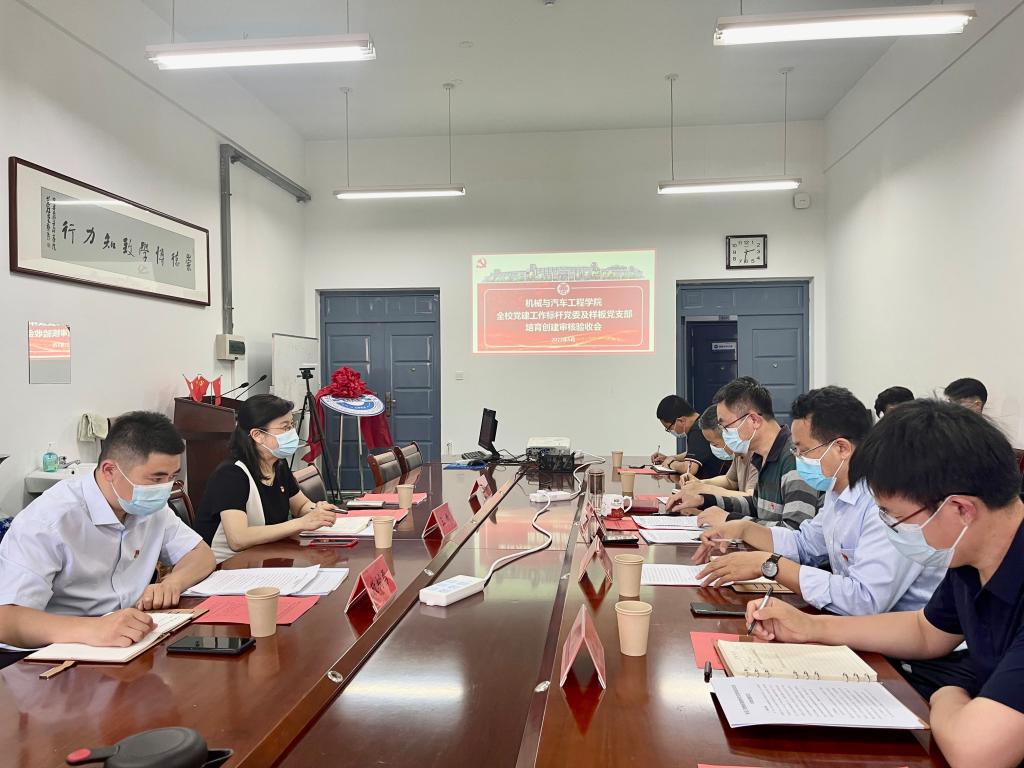 验收会上,王新首先介绍了本次验收工作的任务以及验收程序。随后,学院党委书记李忠晓向工作组汇报了学院党委标杆院系培育创建情况,他从学院党建工作实际出发,重点介绍了学院党委标杆院系培育创建的主要做法、典型经验、特色亮点、工作成效、存在的主要不足和下一步工作思路等。材料成型教研室教师党支部书记车清论、安全工程教研室教师党支部书记刘杰、机械制造教研室教师党支部书记朱晓阳等分别介绍了样板党支部培育创建情况。
