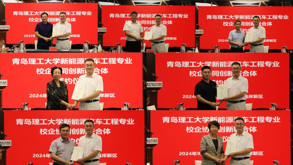 青岛西海岸新区工信局(科技局、大数据局)党组书记、局长刘然吉,青岛理工大学党委常委、副校长陈连军出席了会议。一汽青岛解放汽车有限公司开发院院长张翔、青特集团有限公司总裁助理张凤宁、青岛五菱专用汽车有限公司总经理梁开荣、青岛国轩电池有限公司董事长汪卫东、青岛美锦新能源汽车制造有限公司人力总监朱彦明、吉林大学青岛汽车研究院副院长迟晓梅、烟台汽车工程职业学院副院长付双美等领导代表联合体合作单位参加签约仪式。青岛理工大学发展规划处、科技处、教务处以及新能源汽车工程专业负责人柳江教授和部分专业老师参加了会议。仪式由kaiyun登录中国入口登录党委书记李忠晓主持。