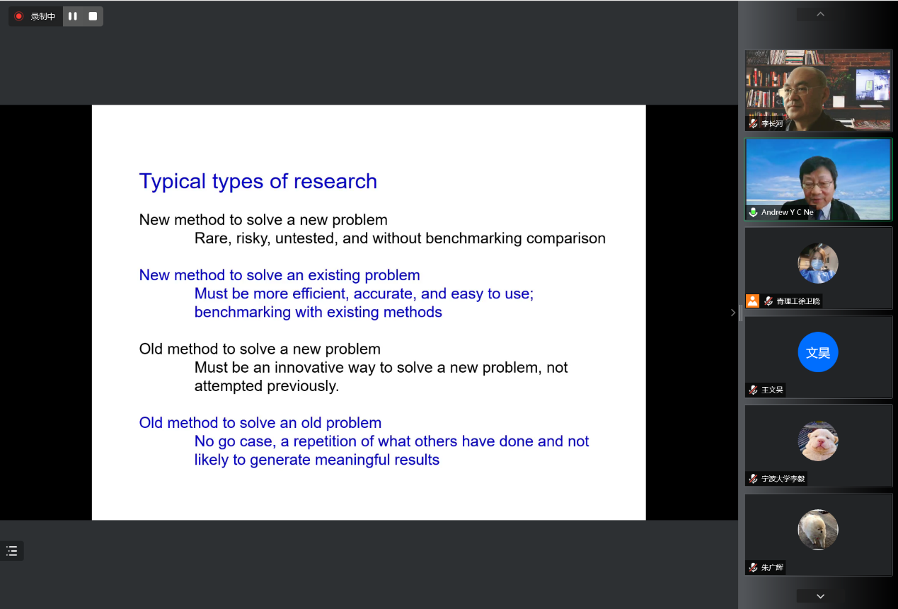 6月18日,IJAMT(The International Journal of Advanced Manufacturing Technology)主编、新加坡国立大学荣休教授倪亦靖(Andrew Yeh Ching Nee)教授应邀为kaiyun官网师生作了题为“Submitting papers to international journals, pitfalls and lessons”的线上专题学术报告。副校长李长河教授主持会议,学校160余名师生参加。
